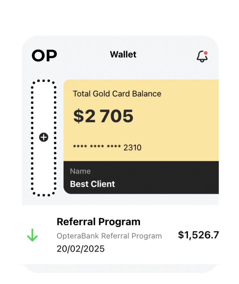 O OpteraBank irá ajudá-lo a armazenar e utilizar fundos no seu cartão virtual, retirados da corretora de criptomoedas.